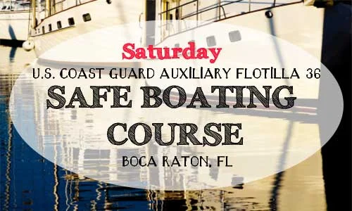 This Saturday from 9 am to 5 pm at the Spanish River Park in Boca Raton, Florida is a great class on boating safety. Hosted by the U.S. Coast Guard Auxiliary Flotilla 36, this boating class will cover all of the most important topics about being on the water. Boating and life on the water is a way of life here in south Florida. Its vital to understand the rules and regulations of safe boating to ensure only happy days at the sandbar, beach and cruising the Intracoastal Waterway.