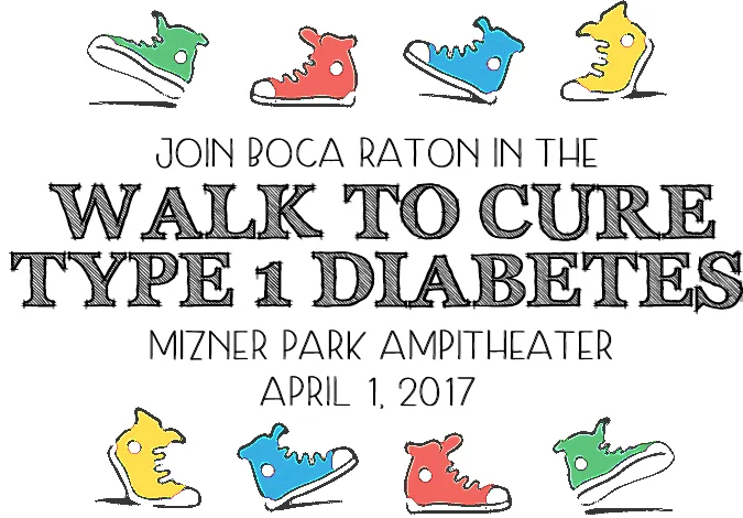 Saturday, April 1st, 2017 is the annual Walk to Cure Diabetes fun walk at the Mizner Amphitheater in Boca Raton. Every year more and more kids, adults, families and friends who have loved ones touched by Type 1 Juvenile Diabetes come together to walk 3 kilometers to raise awareness and funds for diabetes research.