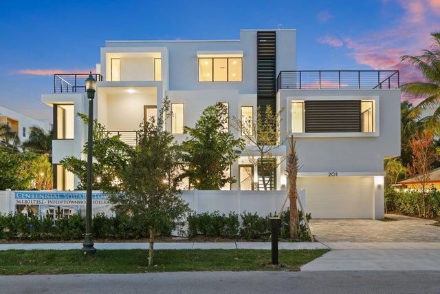 Just Completed - Spectacular Corner Townhome in the Heart of Downtown Delray Beach. Virtually Staged. Introducing a brand-new corner luxury townhome located just two blocks from Atlantic Avenue, where you can walk to everythingrenowned restaurants, charming boutiques, vibrant nightlife, and the pristine beach. This architecturally distinctive residence offers four spacious bedrooms, four full bathrooms, a powder room, a club room with wet bar, and a spectacular rooftop terrace perfect for entertaining under the stars. Designed by Shane Ames of Ames International Architecture, every detail of this home speaks to modern elegance and convenience. A dramatic windowed elevator services all three levels, while soaring ceilings and natural light create an airy, inviting ambiance. The chef's kitchen features an oversized island, a gas stove, premium Miele appliances, and ample custom cabinetry. The open living areas flow seamlessly, designed for both relaxing and entertaining in style. The private heated pool with water feature adds a resort-like feel, while the two-car garagecomplete with room for car liftsand a separate golf cart garage provide ultimate flexibility. The residence is pre-wired for electric vehicle charging and smart home systems, including electric shades, lighting, and more. Upstairs, the luxurious primary suite offers a serene retreat with two walk-in closets, a cozy seating area, and a spa-like bath. Additional features include a skylight, a well-equipped laundry room with side-by-side washer and dryer, and exceptional storage throughout. With NO HOA, immediate occupancy, and a location that's second to none, this is a rare opportunity to own a one-of-a-kind townhome in the most walkable part of Delray Beach.
